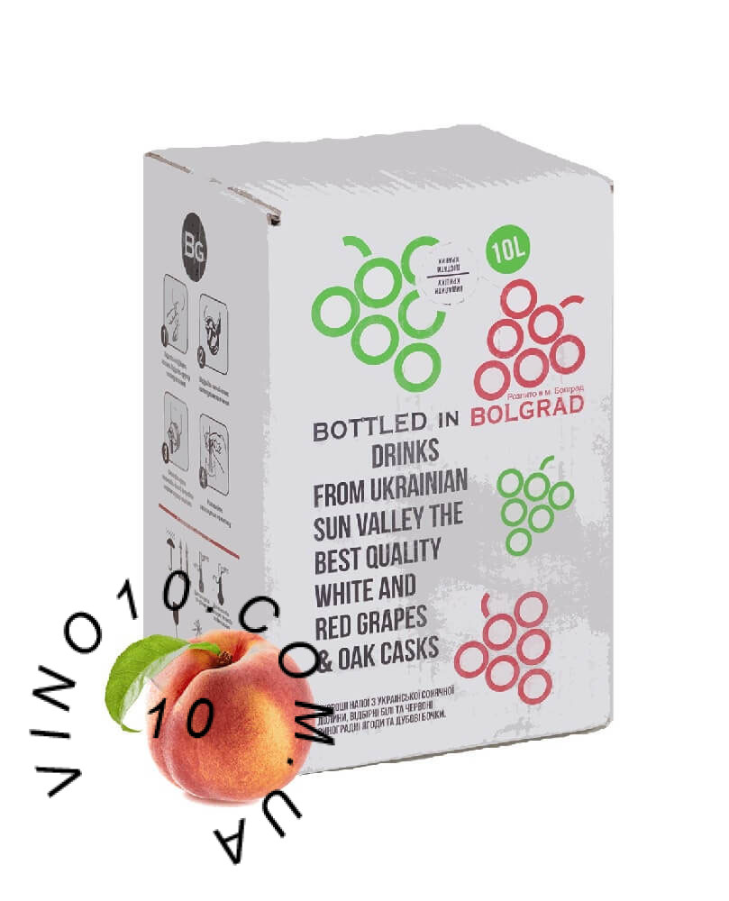 Вино зі смаком персика в картонній упаковці бег-ін-бокс на 10 літрів – це відмінний варіант для заходів будь-якого формату.