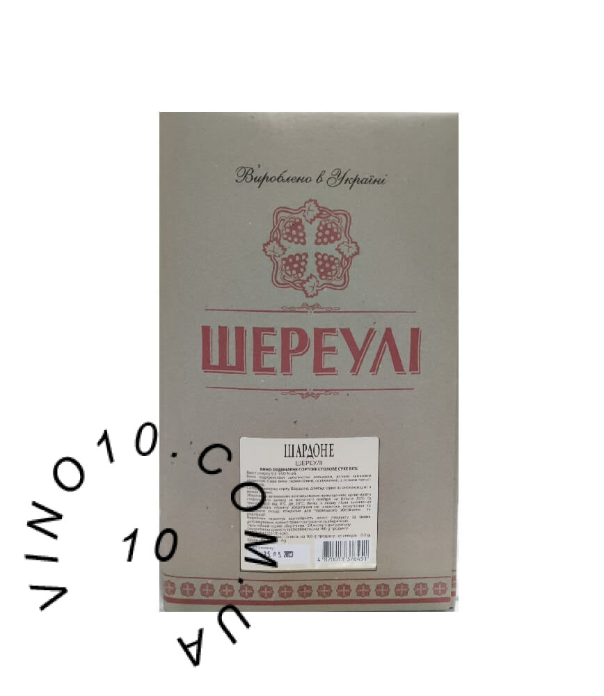 Вино Шереулі Шардоне біле сухе 10 літрів. Вино відрізняється золотистим кольором, легким квітковим ароматом. Смак вина гармонійний, з тонами польових квітів.
