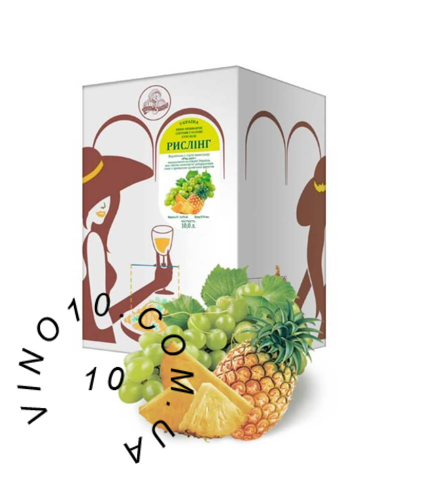 Вино Ріслінг Вино з бочки сухе біле 10 літрів в пакеті виготовлене із класичного білого винограду сорту Ріслінг, вирощеного у Бессарабії на Півдні України. Є “королем білих вин”. Має світло-золотистий відтінок, аромат квітково-фруктовий, грає нотами тропічних фруктів.