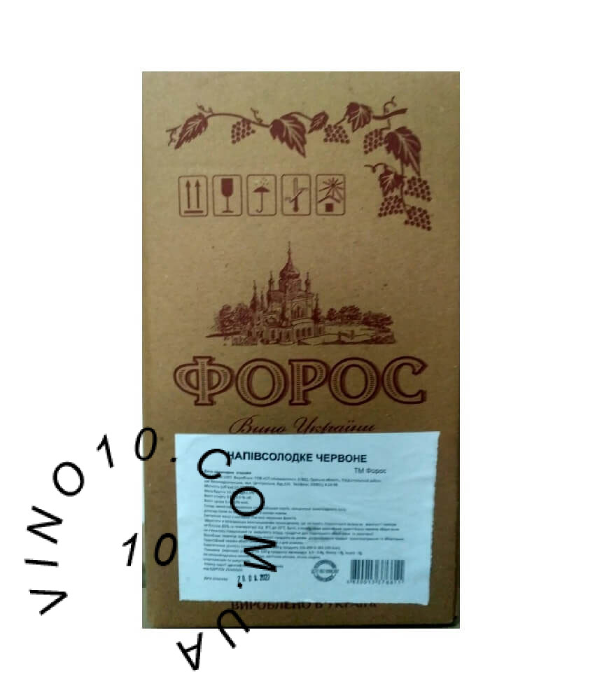 Вино Форос червоне напівсолодке 10 літрів. Представляємо вашій увазі червоне напівсолодке вино, яке стане зіркою вашого вечора ‒ вино Foros. Це вишукане вино, доступне у зручному 10-літровому пакуванні Bag in Box, перетворить будь-який обід чи вечерю на справжнє свято. Підходить як для великих зібрань, так і для тихих вечорів у колі близьких.