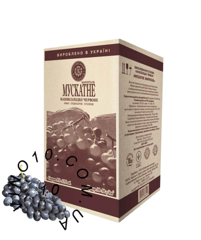 Вино столове Мускатне Марінталь напівсолодке червоне, Marintal 10 літрів.